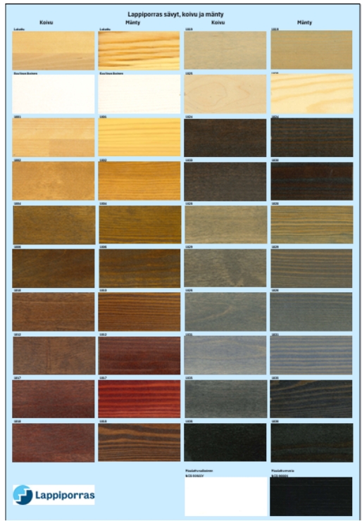 Parvelle johtavat portaat toimittaa kotimainen Lappiportaat. Voit valita puisten portaitten värisävyksi mieleisesi oheisista värivaihtoehdoista.